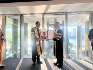 شهد سعادة الأستاذ الدكتور إسماعيل عبد الغفار إسماعيل فرج رئيس الأكاديمية فعاليات حفل تسليم شهادة الدكتوراه الفخرية الممنوحة من الأكاديمية العربية للعلوم والتكنولوجيا والنقل البحري إلى صاحب السمو الملكي الأمير خالد بن بندر بن سلطان آل سعود ، سفير خادم الحرمين الشريفين لدى المملكة المتحدة ورئيس جمعية المنظمة البحرية الدولية.