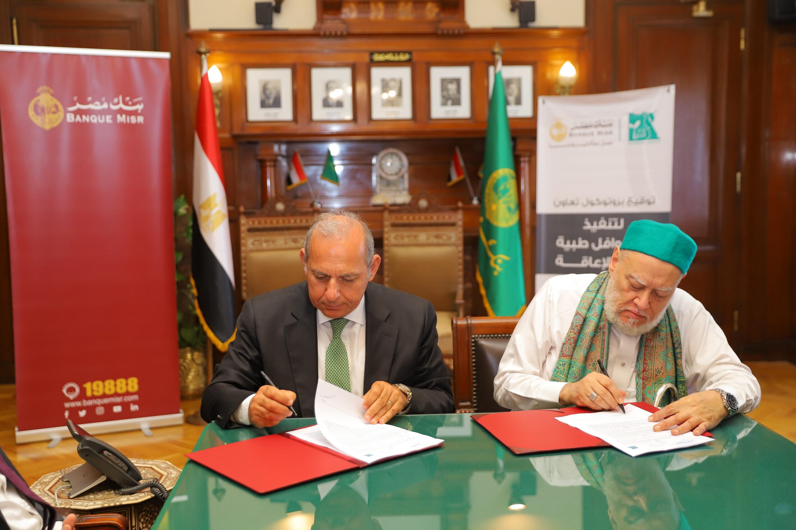 وقام بالتوقيع على بروتوكولي التعاون كلا من هشام عكاشه – الرئيس التنفيذي لبنك مصر، وفضيلة الدكتور علي جمعة  -رئيس مجلس أمناء مؤسسة مصر الخير، وبحضور حسام الدين عبد الوهاب – نائب الرئيس التنفيذي لبنك مصر والدكتور محمد رفاعي الرئيس التنفيذي لمؤسسة مصر الخير ولفيف من قيادات البنك والمؤسسة.