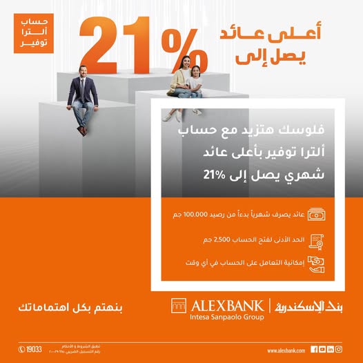 في ظل بحث الكثيرين عن أفضل طرق الادخار وتحقيق عوائد مرتفعة دون المخاطرة برأس المال، يطرح بنك الإسكندرية منتجه الجديد “ألترا توفير”، الذي يمنحك أعلى عائد شهري في مصر يصل إلى 21%، مع مرونة كاملة في التعامل على أموالك، لتستمتع بأرباح منتظمة وتبني مستقبلًا ماليًا أكثر أمانًا.