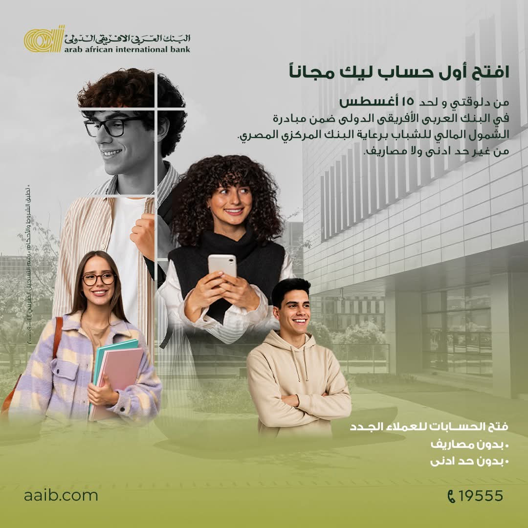في إطار دعمه للشمول المالي وتشجيع الشباب على بدء رحلتهم المالية، أعلن البنك العربي الأفريقي الدولي عن طرح عرض مميز يتيح للشباب فتح حسابات جديدة بدون مصاريف وبدون حد أدنى للرصيد، وذلك حتى 15 أغسطس 2025.