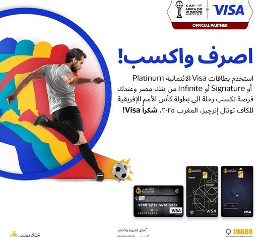 بنك مصر يمنحك الفرصة لحضر كأس الأمم الإفريقية 2025 بالمغرب مع بطاقات Visa الائتمانية