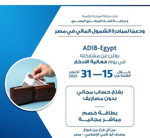 مصرف أبوظبي الإسلامي – مصر يتيح فتح الحسابات وبطاقات الخصم المباشر مجانًا بمناسبة فعالية اليوم العالمي للادخار