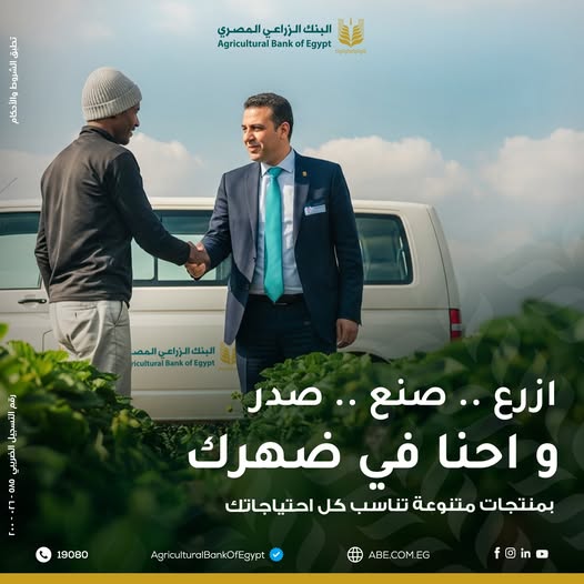 ودعا البنك الزراعي المصري العملاء الحاليين والجدد إلى زيارة أقرب فرع من فروعه للتعرف على تفاصيل البرامج التمويلية والخدمات المتاحة، أو الاتصال على الرقم المختصر 19080 للحصول على الدعم والمشورة المصرفية من ممثلي خدمة العملاء.