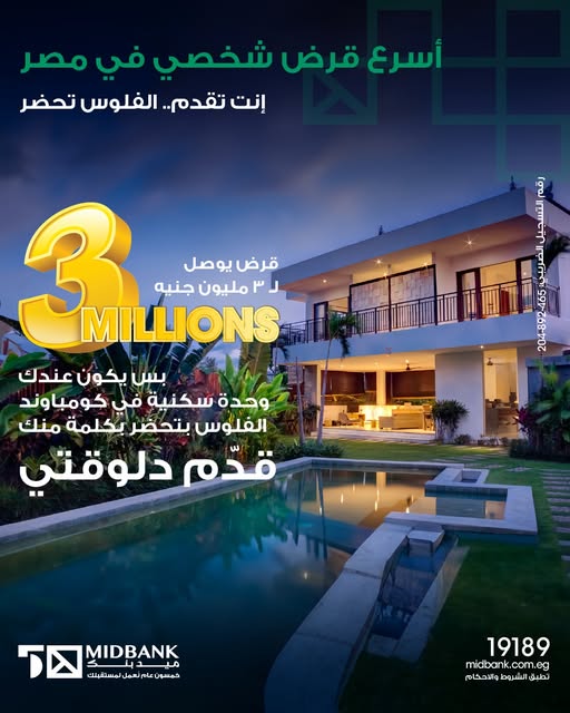 أعلن ميدبنك عن توفير خدمة جديدة لعملائه، تتيح لهم الاستفادة من قيمة وحدتهم السكنية للحصول على قرض شخصي سريع يصل إلى 3 ملايين جنيه. وتهدف هذه الخدمة إلى تقديم حلول مالية مرنة وسريعة تلبي احتياجات العملاء، وتمكنهم من تنفيذ خططهم المالية دون أي تأخير.