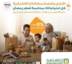 في إطار حرصه على تقديم حلول تمويلية مرنة لعملائه خلال موسم رمضان، أعلن البنك الأهلي المصري عن إطلاق حملة ترويجية خاصة، تتيح لحاملي بطاقات الائتمان إمكانية شراء جميع احتياجاتهم وتقسيط المشتريات على 6 أشهر بدون فوائد، على أن يتم سداد أول قسط خلال شهر أبريل 2026.
