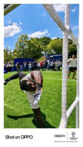 داخل ملعب ميونخ لكرة القدم، جمعت OPPO بين ثقافة كرة القدم، وأبرز لحظات دوري أبطال أوروبا عبر تاريخه، وروح ميونخ الرياضية، إلى جانب أحدث تقنياتها في الذكاء الاصطناعي وابتكارات الكاميرا. وقد أُتيحت الفرصة لعشاق كرة القدم من جميع أنحاء العالم لالتقاط صور سيلفي مدعومة بالذكاء الاصطناعي مع صورة رمزية افتراضية لنجم كرة القدم الإسباني الصاعد وسفير علامة OPPO العالمية، لامين يامال، ضمن جناح تفاعلي يتيح لهم صُنع لحظتهم البطولية الخاصة بدعم من تكنولوجيا OPPO. كما شهد جناح الضيافة حضورًا مفاجئًا لأسطورة إنتر ميلان، ماركو ماتيرازي، الذي التقى بالجماهير وقدم عرضًا للتقنيات الحديثة التي تقدمها OPPO.