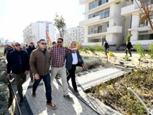 وتابع وزير الإسكان حجم الأعمال والمبيعات بالوحدات سواء السكنية أو المحال، كما تابع أعمال الطرق والمرافق الجاري تنفيذها بموقع المشروع، وأعمال المسطحات الخضراء، حيث اثنى الوزير على ما تم في حجم الأعمال بعدد من مكونات المشروع، موجهاً بسرعة الانتهاء من الأعمال الجاري تنفيذها، وضرورة المتابعة اليومية للمشروع، وضغط معدلات التنفيذ، وسرعة تشطيب الواجهات لعدد من العمارات والفيلات.