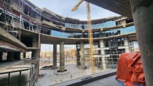 وأضاف طلعت ؛ أن واحدة من أبرز السمات المعمارية للمشروع هي استغلال اختلاف مناسيب الأرض بشكل إبداعي، مما أدى إلى إنشاء طابق أرضي سفلي وآخر علوي، وهو ما يعزز الترابط البصري بين أجزاء المشروع المختلفة ويوفر تجربة متعددة المستويات للمستخدمين ، و هذه الفكرة جعلت المشروع أكثر ديناميكية، حيث تظل المساحات التجارية والإدارية متصلة بصريًا وحركيًا، مما يخلق تجربة تفاعلية غير تقليدية هذا من ناحيه ، ومن ناحية التصميم، يتميز المشروع بواجهات زجاجية شفافة توفر رؤية ممتدة من الداخل إلى شارع التسعين، مما يمنح إحساسًا بالانفتاح والإضاءة الطبيعية، ويعزز من تجربة الزائرين والمستخدمين، كما الواجهات ليست مجرد عنصر جمالي، بل تلعب دورًا أساسيًا في تحسين الراحة البصرية والارتباط المباشر بالبيئة الخارجية. إضافة إلى ذلك، فإن التصميم المنحني والدائري يوفر تكوينًا فريدًا للمساحات التجارية، حيث تم توزيع الوحدات بطريقة تضمن رؤية واضحة من مختلف الزوايا، مما يزيد من قيمة المساحات التجارية ويجعلها أكثر جاذبية للمستثمرين والمستخدمين. هذا التكوين يساعد في خلق تجربة حضرية متميزة، حيث تتمتع جميع الوحدات برؤية مباشرة إما على الواجهة الرئيسية أو على الساحات الداخلية المصممة لتعزيز التفاعل الاجتماعي.