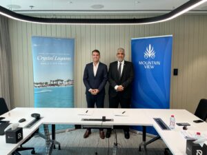 Mountain View has announced a strategic partnership with Crystal Lagoons, a global pioneer in sustainable lagoon technology, to construct the iconic lagoons in Mountain View’s communities, starting with world-class crystalline lagoon with the iCity New Cairo project. This collaboration, with an investment of EGP 5 billion, reinforces Mountain View’s commitment to creating exceptional living experiences for its communities. The partnership agreement was signed by Maged Mobarak, Chief Project Officer at Mountain View, and Jean Pierre Juanchich, Global Business Director at Crystal Lagoons.