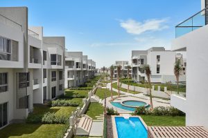 The “Beta Greens New Cairo” project, which started in September 2019, consists of an area of 25 acres, and includes 672 housing units as well as a villa district that includes 62 villas, in addition to a commercial area, a sports club on an area of 9000 meters, a social club, and a mosque, as well as a swimming pool.