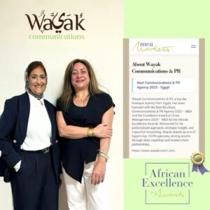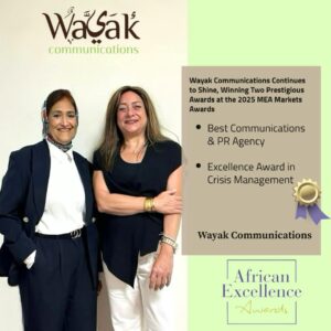 وفازت Wayak Communications بجائزتين مرموقتين ضمن جوائز African Excellence Awards 2025 التي تنظمها منصة MEA Markets البريطانية المرموقة، وحصدتWayak Communications جائزة أفضل وكالة علاقات عامة متخصصة، وجائزة التميز في إدارة الأزمات لعام 2025 في الشرق الأوسط وأفريقيا
