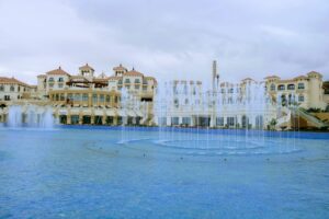 إطلالة على البحيرة المركزية ومسرح مفتوح وسلاسل مطاعم شهيرة