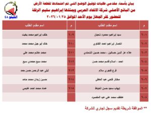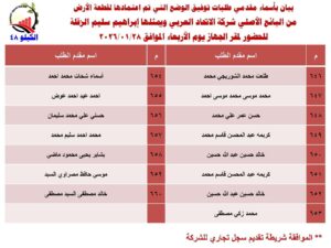 أعلن جهاز مدينة العبور الجديدة عن أسماء السادة العملاء الذين تم توفيق أوضاعهم بمنطقة ك48 سابقًا، التابعة لشركة الاتحاد العربي (عقد 400 فدان)، وذلك في إطار جهود الجهاز لتقنين الأوضاع القانونية وتنفيذ الضوابط والقرارات المعتمدة من هيئة المجتمعات العمرانية الجديدة.