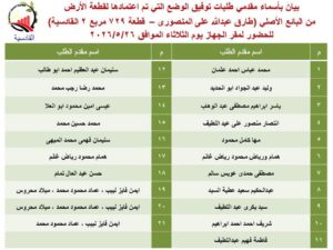 منطقة القادسية نموذج متقدم لتقنين الأراضي
