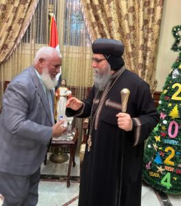 بالصور.. وفد من المؤسسة الدولية للتنمية الاقتصادية برئاسة الحاج إبراهيم الشنراوي الرئيس التنفيذي للمؤسسة يقدم التهاني والهدايا لكنائس بني سويف