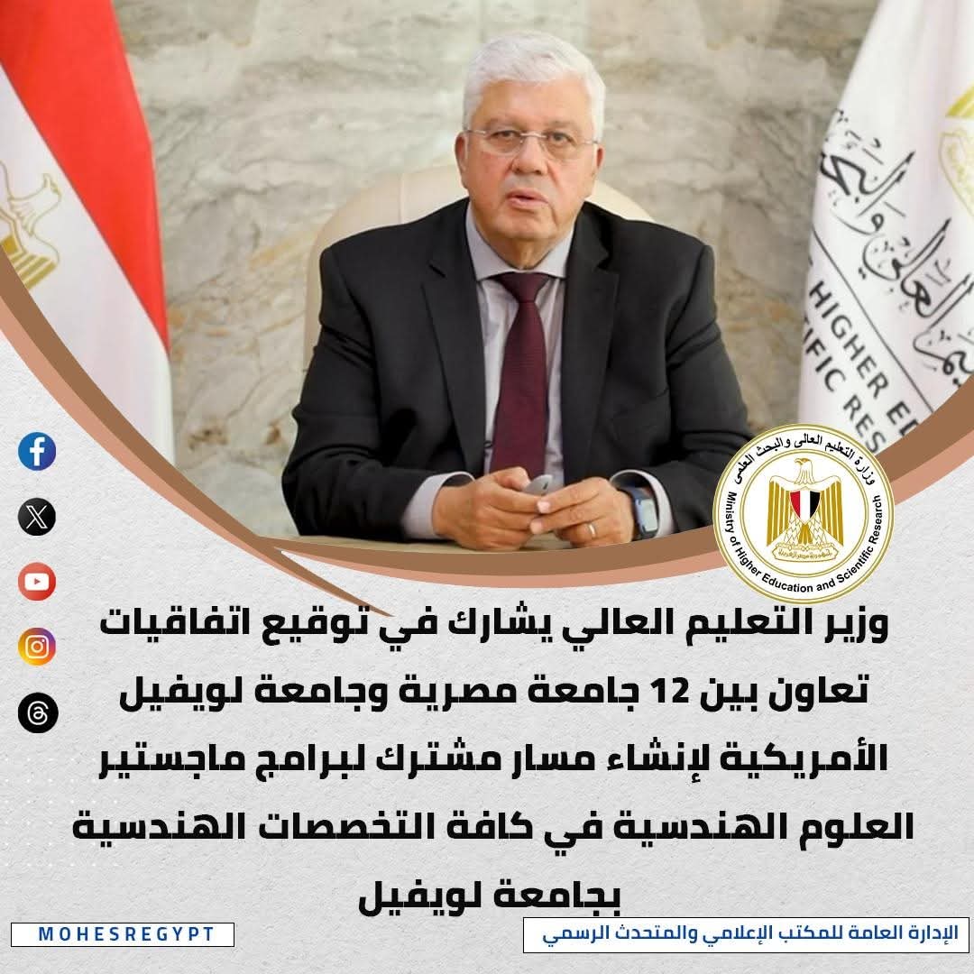 تواصل وزارة التعليم العالي والبحث العلمي جهودها لتطوير منظومة التعليم العالي والبحث العلمي في مصر، ودعم القضايا التنموية والمجتمعية.