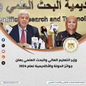 أعلن مجلس أكاديمية البحث العلمي والتكنولوجيا، خلال اجتماعه رقم (182) المنعقد اليوم، أسماء نخبة من علماء مصر المتميزين الفائزين بجوائز الدولة لعام 2024، والتي تشمل جوائز النيل، التقديرية، التفوق، والتشجيعية في مجالي العلوم والعلوم التكنولوجية المتقدمة، إلى جانب جوائز الرواد وجوائز المرأة (التقديرية والتشجيعية). وأكد الدكتور أيمن عاشور أن هذا الحدث يمثل مناسبة وطنية سنوية ينتظرها المجتمع العلمي، لما تحمله من تقدير حقيقي لجهود العلماء المصريين، مشددًا على أن تكريم الفائزين هو استحقاق مستحق لدورهم في دعم التحول نحو اقتصاد المعرفة وبناء الجمهورية الجديدة.