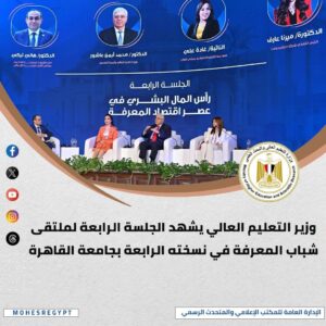 شهد الدكتور أيمن عاشور وزير التعليم العالي والبحث العلمي، الجلسة الرابعة التي جاءت بعنوان: “رأس المال البشري في عصر اقتصاد المعرفة”، وذلك ضمن فعاليات ملتقى شباب المعرفة في نسخته الرابعة، ووجه الوزير الدعوة للطلاب بالاستفادة من المبادرات والفرص التدريبية المتاحة، مؤكدًا أن سوق العمل لم يعد يعتمد فقط على الشهادات الجامعية بل أصبح يتطلب مهارات متقدمة، لافتًا إلى أهمية الاستفادة من النسخة الثانية من مبادرة “كن مستعدًا” التي تُقام تحت شعار “مليون مبتكر مؤهل”، وتهدف إلى تقديم الدعم الكامل للطلاب عبر منظومة شاملة تلبي احتياجاتهم من المهارات والجدارات اللازمة للتأهل لسوق العمل، كما أكد الوزير أن الوزارة والجامعات المصرية لديها إيمان بدور الشباب كمحرك رئيسي للتنمية، ولذلك يتم السعي لبناء قدرات وتأهيل طلاب الجامعات وحديثي التخرج، وتوفير مسارات متعددة للتأهيل المهني والابتكاري للشباب، مشددًا على سعي الوزارة لتقديم الدعم للطلاب من خلال منظومة شاملة ومتكاملة تؤهلهم لسوق العمل.