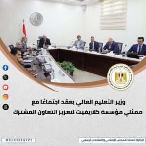عقد الدكتور أيمن عاشور وزير التعليم العالي والبحث العلمي، اجتماعًا مع ممثلي مؤسسة كلاريفيت، وخلال الاجتماع أوضح الوزير أن مبادرة تحالف وتنمية تهدف إلى تعظيم مخرجات البحث العلمي كعامل فاعل لتنفيذ برنامج عمل الحكومة المصرية 2024-2026 ارتكازًا على تشكيل تحالفات لتحفيز الإبداع وريادة الأعمال، وتمويل المشروعات التي تدعم اقتصاد المعرفة، وتحقيق أهداف التنمية المُستدامة، وتكامل الجهود بين عناصر التحالف الرئيسية الثلاثة، وكذلك استغلال التمويل الكبير الذي يقدر بمليار جنيه في مرحلته الأولى، وأكد الدكتور أيمن عاشور أن سياسة الوزارة تدعم فكر نشر برامج التخصصات البينية والعابرة للتخصصات، تفعيلًا لهذا المبدأ الهام في الاستراتيجية الوطنية للتعليم العالي والبحث العلمي، لأهميتها في مواجهة التحديات المعاصرة التي تتطلب التعاون بين التخصصات العلمية المختلفة؛ للوصول إلى حلول مبتكرة يشارك فيها الخبراء من ذوي الصلة بهذه التحديات.