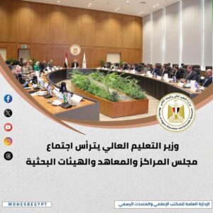 ترأس الدكتور أيمن عاشور، وزير التعليم العالي والبحث العلمي، اجتماع مجلس المراكز والمعاهد والهيئات البحثية، وخلال الاجتماع وافق المجلس على إطلاق ثلاثة برامج جديدة، البرنامج الأول هو برنامج شبكة مصر البحثية، والبرنامج الثاني هو برنامج حماية الملكية الفكرية، ويختص البرنامج الثالث بإنشاء 3 مراكز لتطبيقات الذكاء الاصطناعي بالمراكز والمعاهد والهيئات البحثية في المجالات ذات الأولوية، كما شهد المجلس توقيع بروتوكول تعاون مشترك لتأسيس تحالف “Smart Energy Alliance” (تحالف الطاقة الذكية) بمشاركة 10 جهات بحثية، وصناعية، ورقابية، وتعليمية، بإشراف من وزارة التعليم العالي والبحث العلمي، وضمن المبادرة الرئاسية “تحالف وتنمية” تحت عنوان: “الحلول الصناعية المستدامة باستخدام الطاقة المتجددة والخضراء لتطوير بعض المنتجات البترولية والكيميائية الأكثر انتشارًا في مصر للحد من الفاتورة الاستيرادية”.