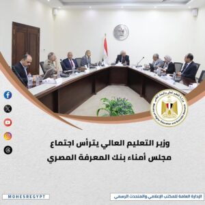ترأس الدكتور أيمن عاشور، وزير التعليم العالي والبحث العلمي، اجتماع مجلس أمناء بنك المعرفة المصري، وشهد الاجتماع اعتماد دليل رقمي شامل للخدمات والحلول التكنولوجية التي يقدمها البنك والخطة السعرية، كما تم اعتماد الإصدار الثالث لتصنيف سيماجو العالمي للمراكز والمعاهد والهيئات البحثية بمنطقة الشرق الأوسط وشمال إفريقيا، والاستعداد للإصدار الرابع من التصنيف، كما ناقش المجلس دعم دور البنك في بناء كوادر التدريب داخل المؤسسات التعليمية والبحثية لدعم وتأهيل الباحثين.
