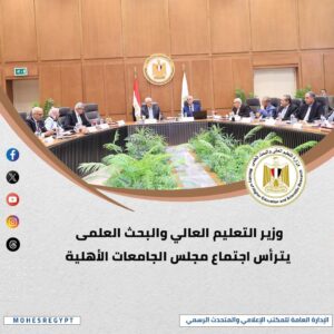 بالصور..وزير التعليم العالي يترأس اجتماع مجلس الجامعات الأهلية.. ويؤكد متابعة جاهزية الجامعات الأهلية لبدء الدراسة اعتبارًا من العام الجامعي 2025/2026