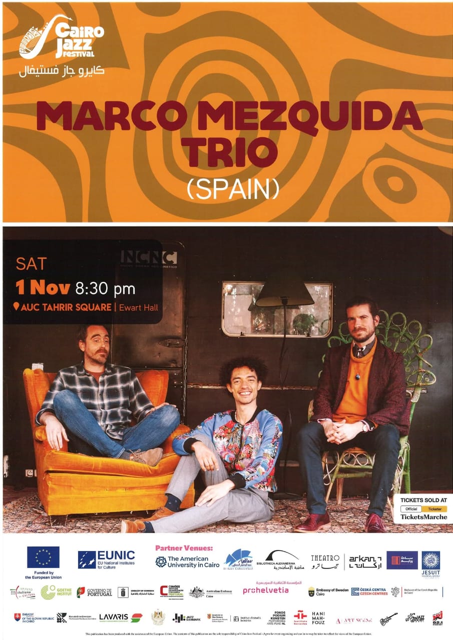في إطار التعاون الثقافي بين معهد ثربانتس بالقاهرة وشبكة المعاهد الثقافية الوطنية للاتحاد الأوروبي (EUNIC–Egypt)، وبالشراكة مع وفد الاتحاد الأوروبي في مصر، يستضيف مهرجان القاهرة الدولي للجاز فرقة الموسيقى الإسبانية ماركو ميزكيدا الثلاثية في أمسية موسيقية استثنائية يوم السبت 1 نوفمبر بقاعة إيوارت في الجامعة الأمريكية بالقاهرة.