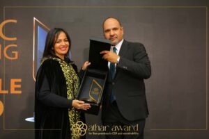 كرم الملتقي السنوي للاستدامة هنا طه مدير العلاقات الإعلامية بشركة ” ذا بروز ” للعلاقات العامة ومنحها جائزة أثر تقديرا لدورها في مجال الاستدامة و المسؤولية المجتمعية.