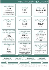 كشفت شركة بنيان للتنمية والتجارة عن سعر الاكتتاب في أسمها تمهيدًا لبدء تداولها في البورصة المصرية.
