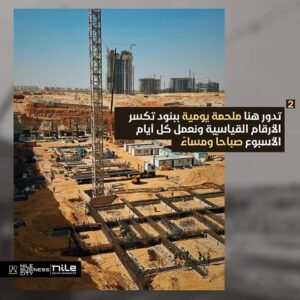 وأضاف المهندس محمود طاهر: “تدور في مشروع نايل بيزنس سيتي ملحمة يومية ببنود تكسر الأرقام القياسية ونعمل كل أيام الأسبوع صباحًا ومساءً”.