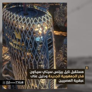 يذكر أن مشروع نايل بيزنس سيتى يعد أعلى مدينة رأسية فى أفريقيا، بمساحة 296 ألف متر مربع، بما يعادل نحو 70.5 فدان، وهو أعلى ناطحة سحاب بعد البرج الأيقونى.