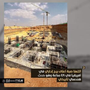 وتابع الرئيس التنفيذي لشركة نايل للتطوير العقاري: “أتممنا صبة أعلي برج إداري في أفريقيا في 48 ساعة وهو حدث هندسي تاريخي”.