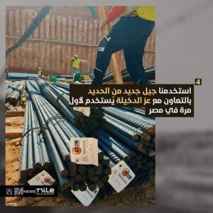 وأشار المهندس محمود طاهر إلى أنه تم استخدام جيل جديد من الحديد بالتعاون مع عز الدخيلة يستخدم لأول مرة في مصر.