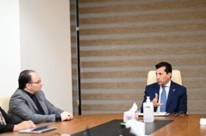 “التقى المستشار الاقتصادي أيمن حامد سليمان، رئيس مجموعة أيمن حامد سليمان، برفقة وفد من المجموعة، الدكتور أشرف صبحي وزير الشباب والرياضة، وذلك لبحث خطة المجموعة لتنفيذ وإدارة مشروع رياضي كبير بالعاصمة الإدارية الجديدة.