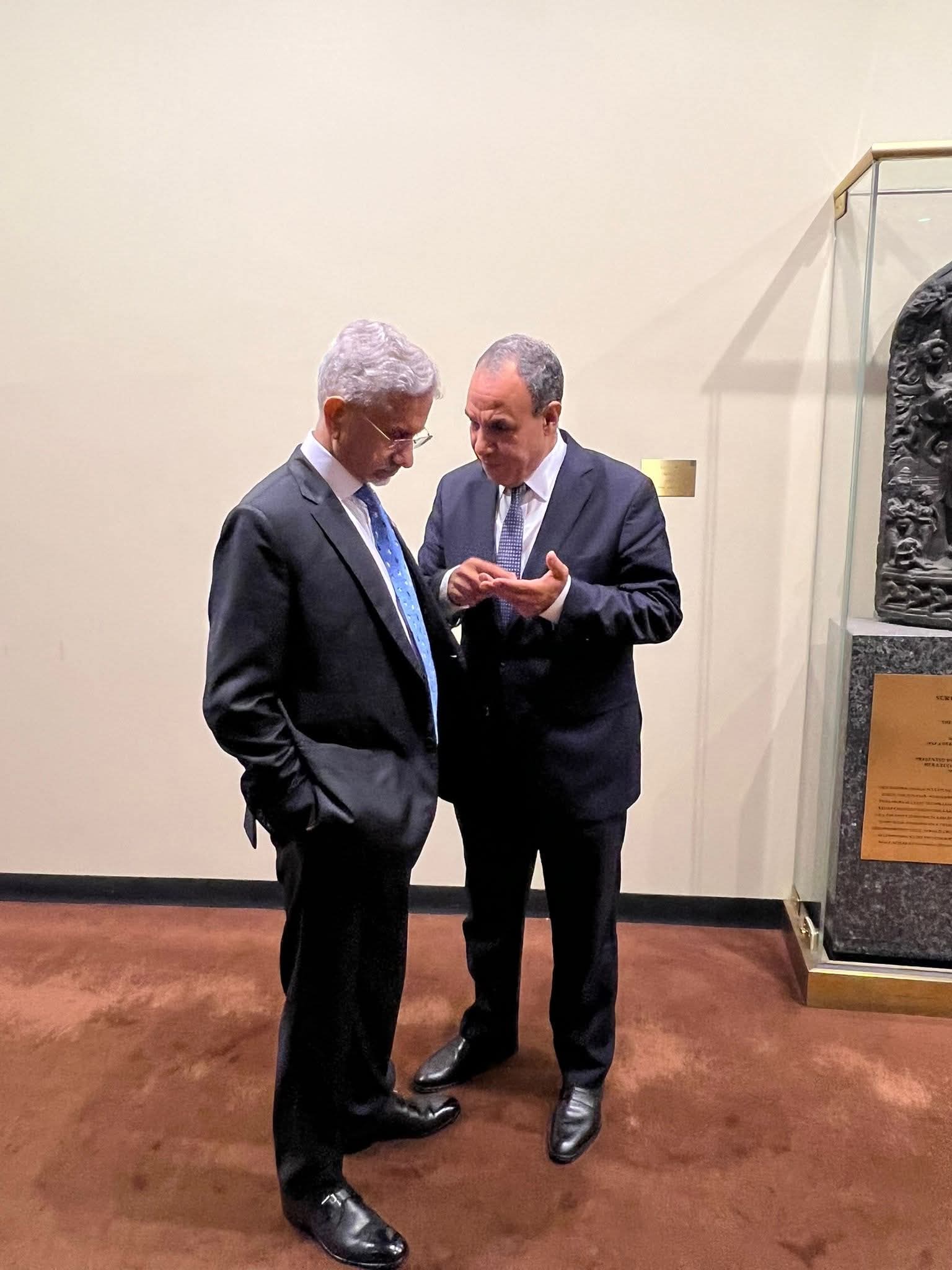 التقى د. بدر عبد العاطي وزير الخارجية والهجرة وشئون المصريين بالخارج، يوم الخميس 25 سبتمبر، مع سوبراهمانيام جايشانكار وزير خارجية الهند، وذلك على هامش أعمال الشق رفيع المستوى للدورة الثمانين للجمعية العامة للأمم المتحدة في نيويورك.