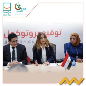 وتم توقيع الاتفاقيتين من جانب البنك بواسطة معاوية الصقلي، مع كلٍ من مروة فخري، المدير التنفيذي لمؤسسة حياة كريمة، وهاني عبد الفتاح، المدير التنفيذي لمؤسسة صناع الخير للتنمية.