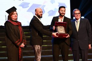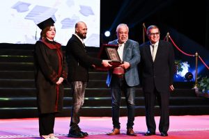 كما تم تكريم صوت مصر الأصيل النجمة شيرين شيرين عبد الوهاب التى ظهرت بإطلالة ساحرة خطفت بها أنظار الحضور، وأشعلت الحفل بأغانيها المتميزة منها “ماشربتش من نيلها” و”يا معافر”، وحرصت على تهنئة الطلاب ومداعبتهم وتوجيه الشكر لجامعة مصر للعلوم والتكنولوجيا ورئيس مجلس الأمناء خالد الطوخى، كما احتفى حمادة هلال بالخريجين وغنى أغنيته الشهيرة “والله وعملوها الرجالة” وسط تصفيق حاد من الطلبة وأهاليهم وعلق قائلا :”سعيد اني موجود معاكم وتحية لكل قيادات الجامعة والتحية أيضا لكل طلاب مصر”.