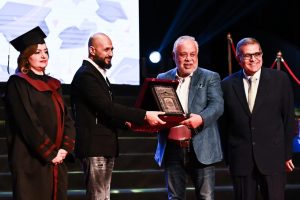 وفى هذا الإطار وجه الدكتور أشرف حيدر غالب، القائم بأعمال رئيس جامعة مصر للعلوم والتكنولوجيا، الشكر لخالد الطوخى رئيس مجلس الأمناء على دعمه الكامل، مهنئا الطلاب بتخرجهم، قائلا :”أهنئكم بتخرجكم، والف مبروك لشباب خريجي جامعة مصر بكلية طب الاسنان، وهذه بداية مرحلة جديدة في حياتكم وتحية كبيرة لأولياء الأمور الذين شرفونا” مُرحبا بوجود خالد الطوخى على رأس الحضور معتبرا أن وجوده يمثل دعما كبيرا للطلاب، كما رحب بجميع الحضور.