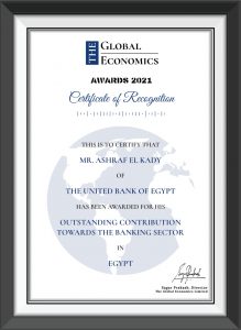 منحت اليوم مؤسسة جلوبال ايكونوميس البريطانية اشرف القاضي – رئيس المصرف المتحد جائزة القيادة المحترفة للمؤسسات البنكية عن عام 2021