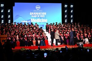 فى حفل كبير ووسط أجواء مبهجة، احتفلت كلية الطب البشري جامعة مصر للعلوم والتكنولوجيا، بحفل تخرج طلاب العام الدراسي 2023ـ2022، والذى أقيم برعاية خالد الطوخى رئيس مجلس أمناء جامعة مصر للعلوم والتكنولوجيا، وبحضور الدكتور أشرف حيدر رئيس جامعة مصر للعلوم والتكنولوجيا، والدكتور شريف رفعت نائب رئيس الجامعة لشئون التعليم والطلاب، والدكتور نهاد المحبوب عميد كلية الطب البشري بالجامعة.