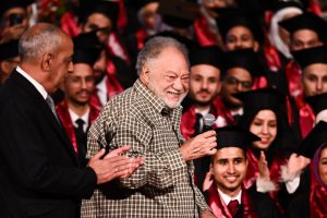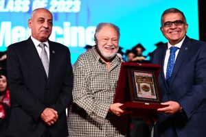 بالصور.. الفنان الكبير يحي الفخراني يشارك في حفل تخرج دفعة جديدة من كلية الطب البشرى بجامعة مصر للعلوم والتكنولوجيا